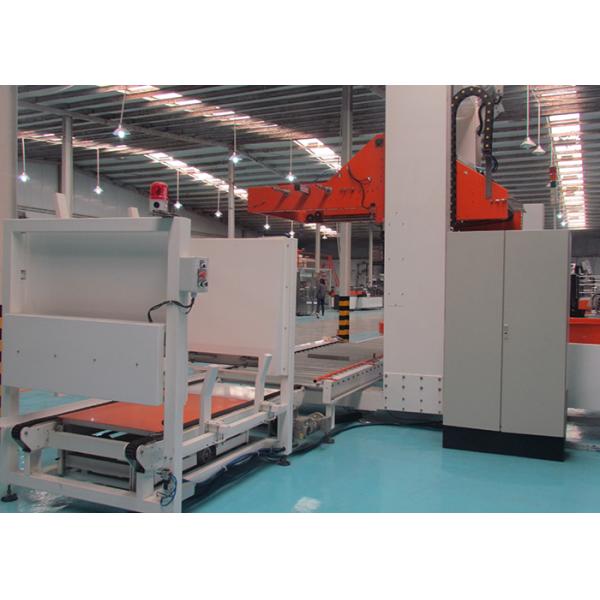 The Automatic Palletizer can put different products in a fixed order and stack them on the pallet automatically. Number of product and layers can be set. Easy for the fork moves the full pallet into storehouse. This equipment adopts PLC, touch screen and intelligent managing which is not only simple and easy to master, but also reducing the labor.